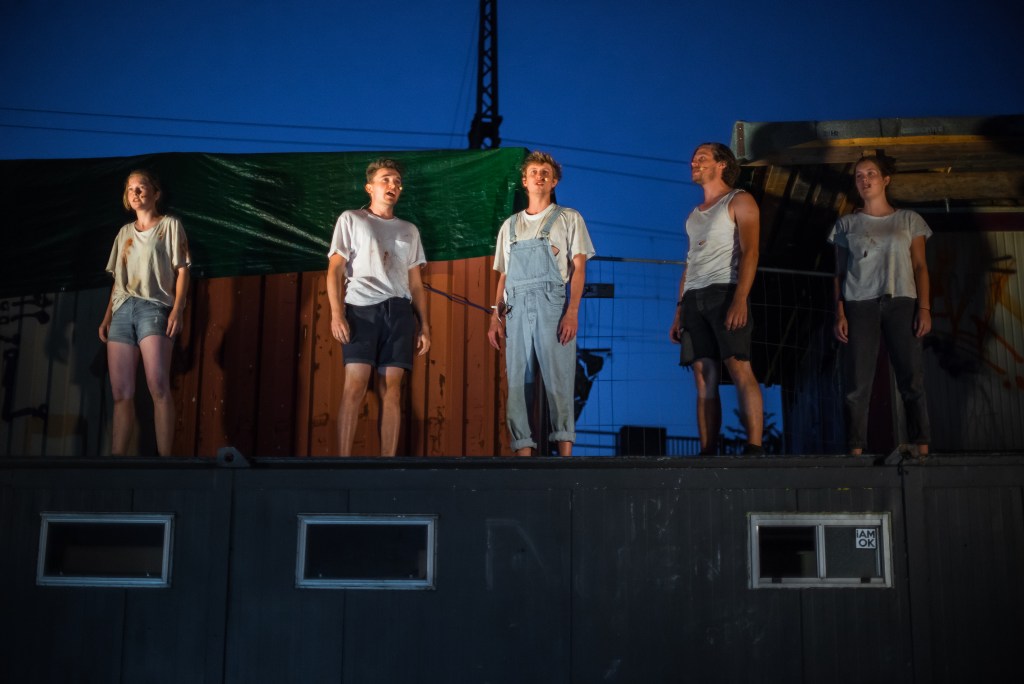 Die Geschwister Thebens auf dem Open-Air-Container.