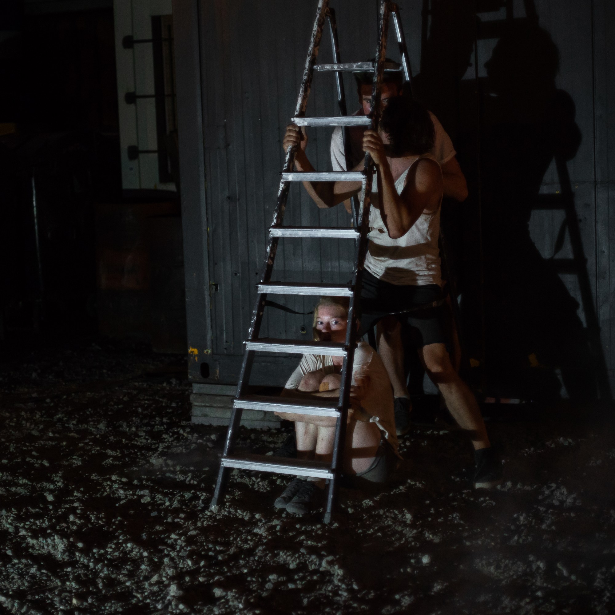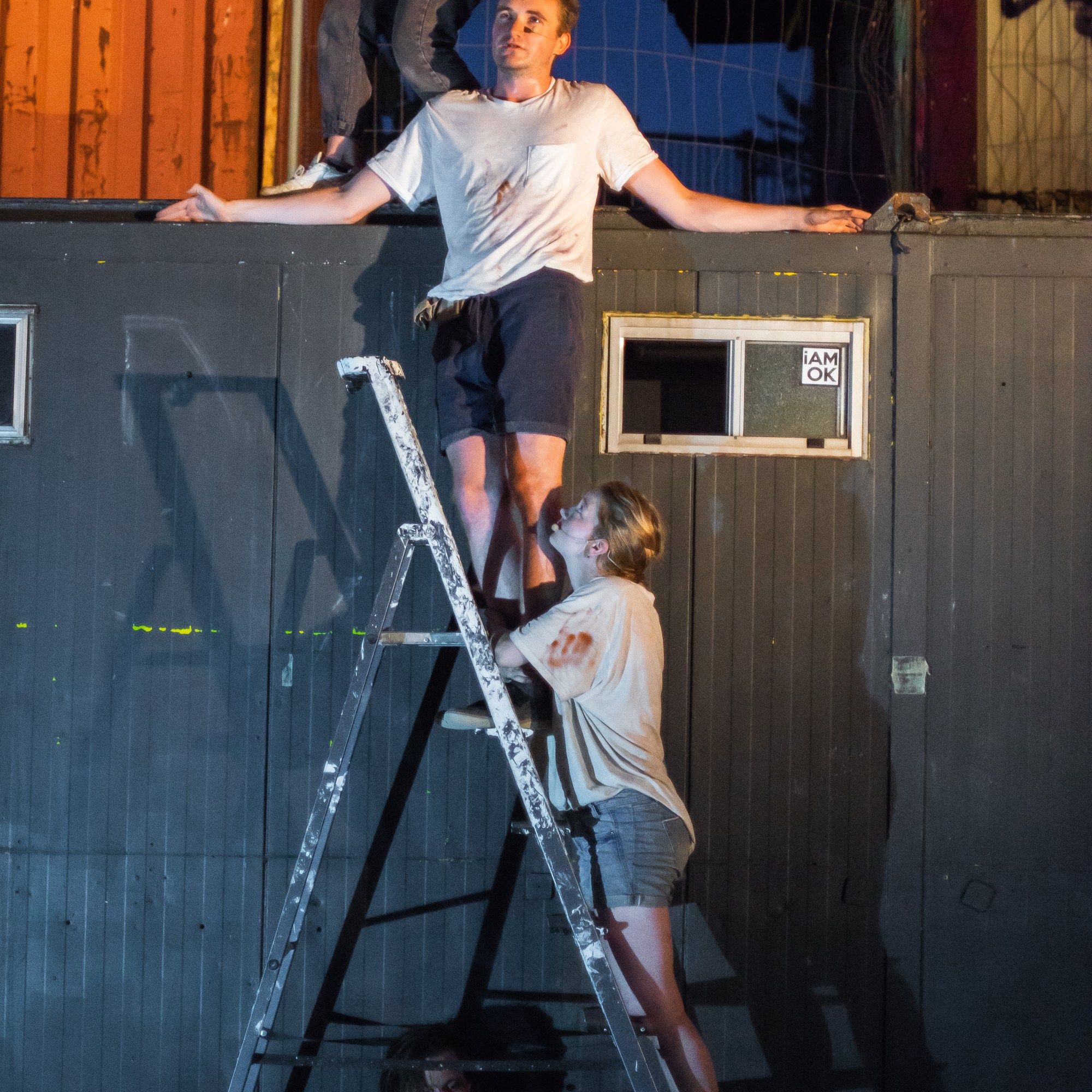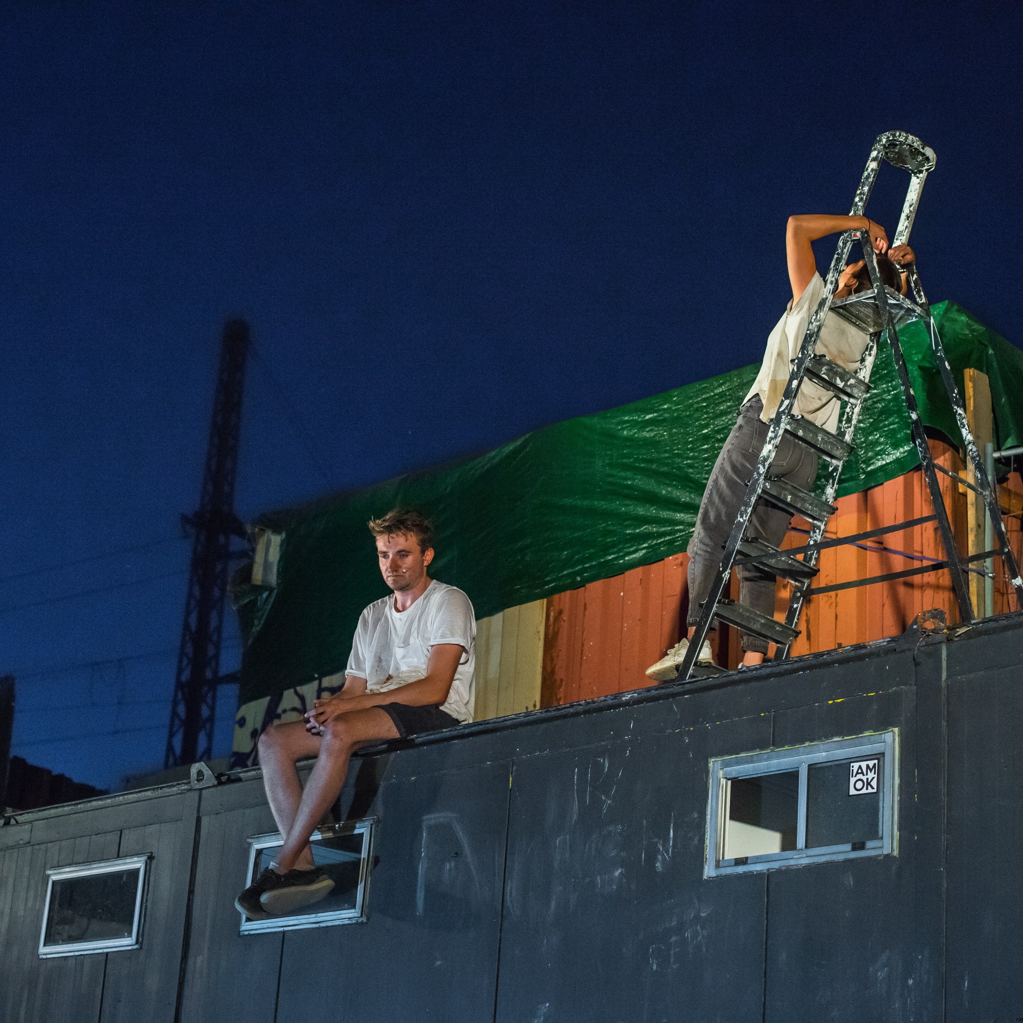 Durch die Open-Air Situation und dem Lageort zwischen Spree, Straße und Club ist die Stadt immer anwesend. Die Inszenierung ist eine anarchische Aneignung eines Transitraumes – wie auch in der Antigone-Überschreibung, die den Fokus auf das Dazwischen, den Durchgang, die Geschwister- beziehung legt. Die Zeit dehnt sich und aus unterschiedlichen Perspektiven wird der Moment vor dem Doppelmord der Brüder beleuchtet und die Frage durchgespielt, was Verrat an der Familie bedeutet.