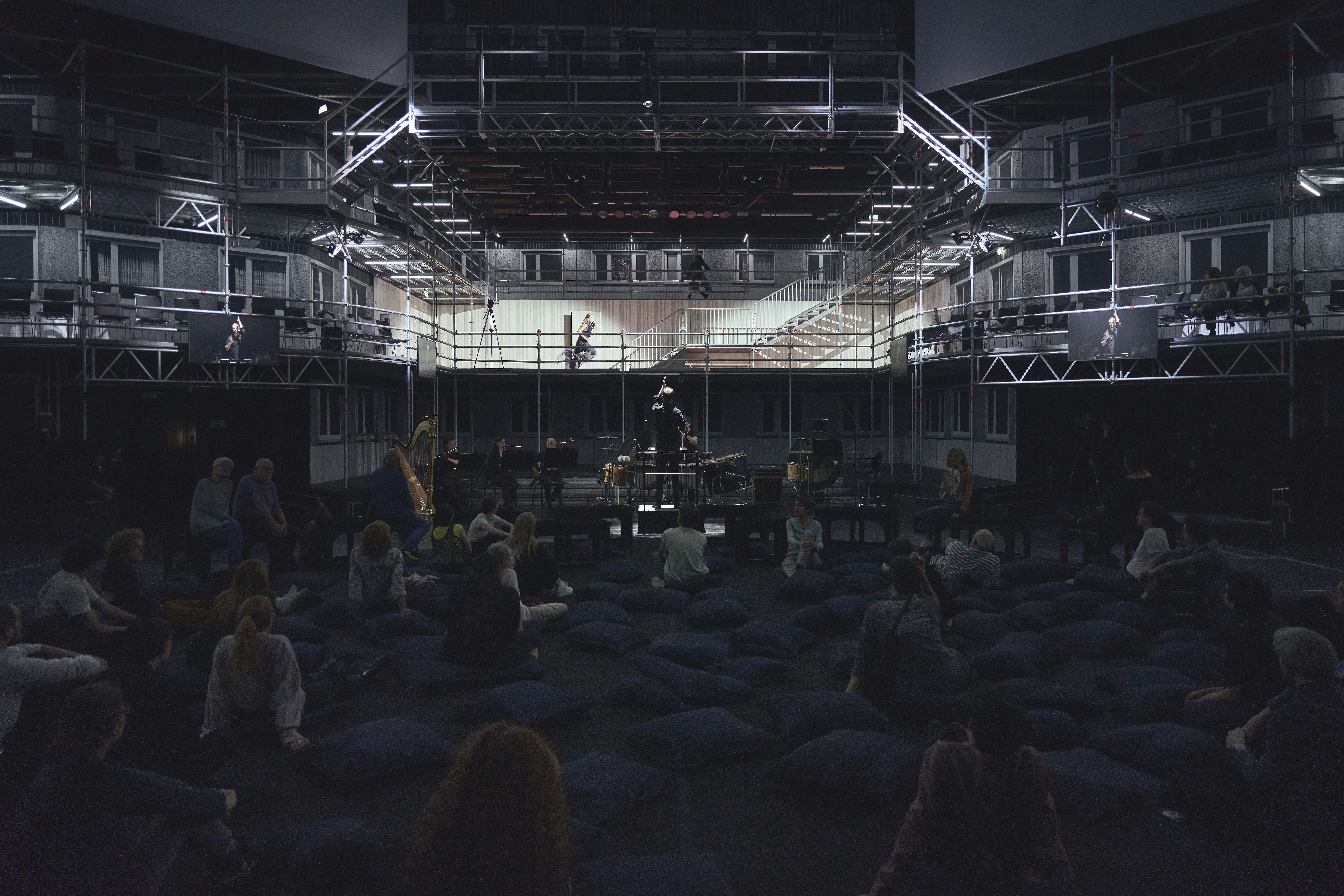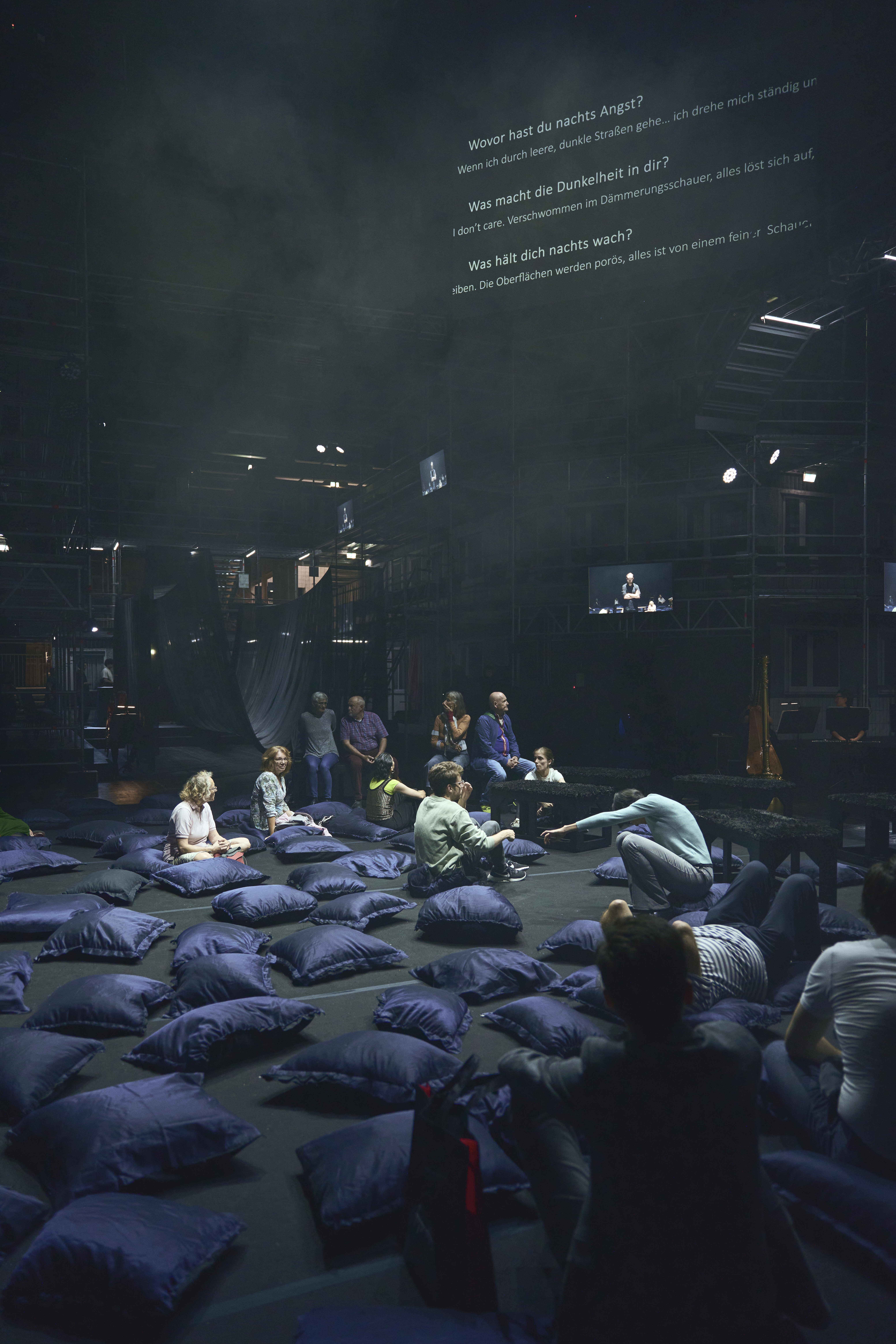 NACHT ist eine Begehung der nächtlichen Untiefen. Gemeinsam mit drei Sängerinnen und dem Orchester ist das Publikum eingeladen, Nachtlandschaften zu erkunden. Die Musik führt uns in die Unschärfe der Nacht, sie deutet an, sie umhüllt, sie raschelt, sie pfeift, sie lässt aufhorchen und legt sich wie eine Decke auf die Brust. Stellen wir uns gemeinsam der Dunkelheit, dem Unausgeleuchteten, dem Exzess und der Angst – Sorge tragend und Sorge teilend.