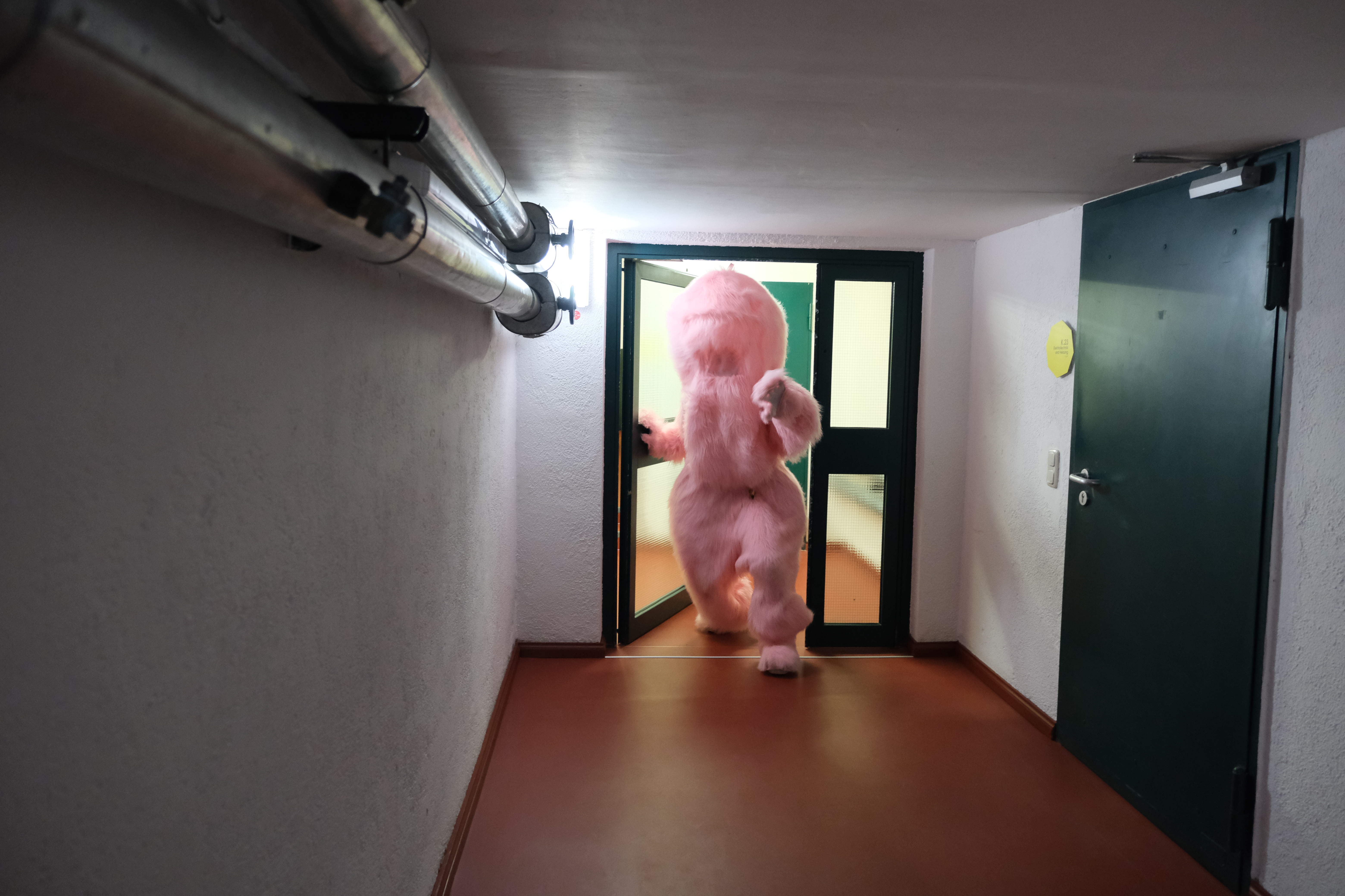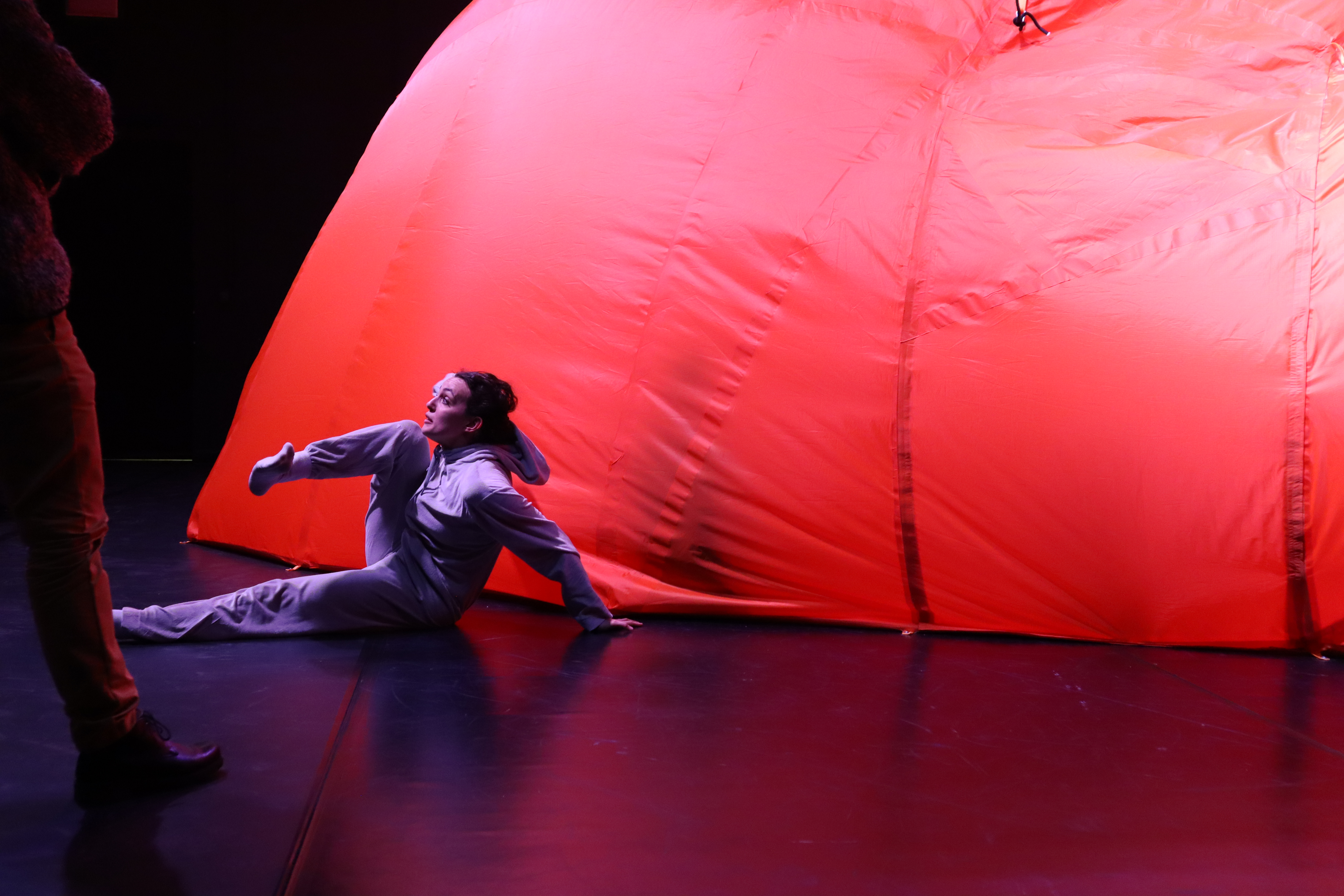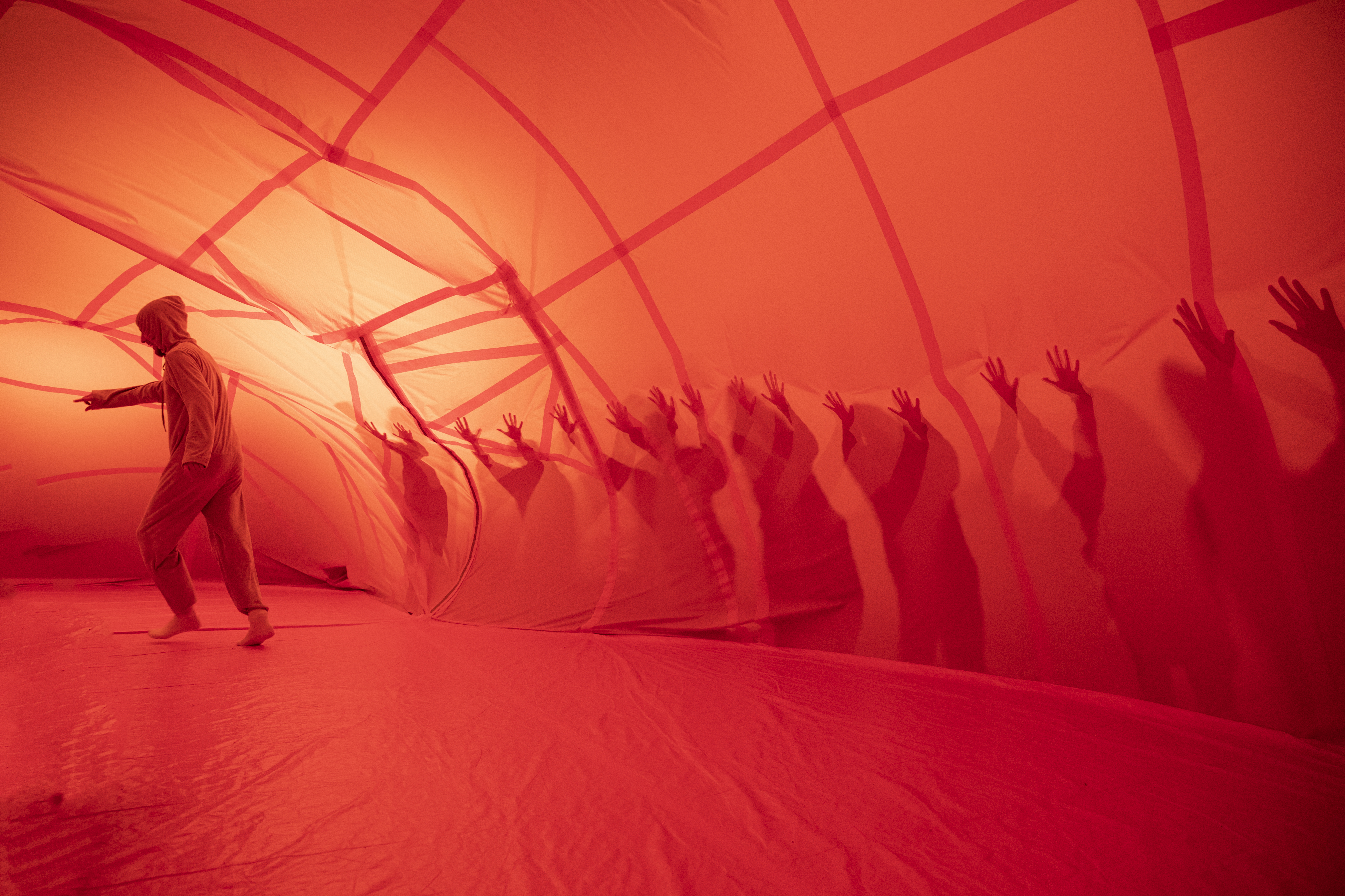 Eine immersive performative Theaterproduktion, in der drei Publikumsgruppen drei Figuren durch den Veranstaltungsort folgen. Sie treffen sich im Bühnenraum, in dem zwei Gruppen eine begehbare aufblasbare Blase betreten, bis diese kollabiert. Durch die Einbindung von tänzerischen und performativen Elementen und einem Verweben von fünf Sprachen (Deutsch, Englisch, Französisch, Italienisch und Türkisch) erlebt das Publikum eine sinnliche Erfahrung im Spannungsfeld zwischen Solidarität und Verdrängungsstrategien. Das Stück mündet in einer inszenierten Gesprächssituation, in der das Publikum eingeladen wird, sich untereinander und mit den Figuren über das Erlebte und die daran anschließenden Themen auszutauschen.